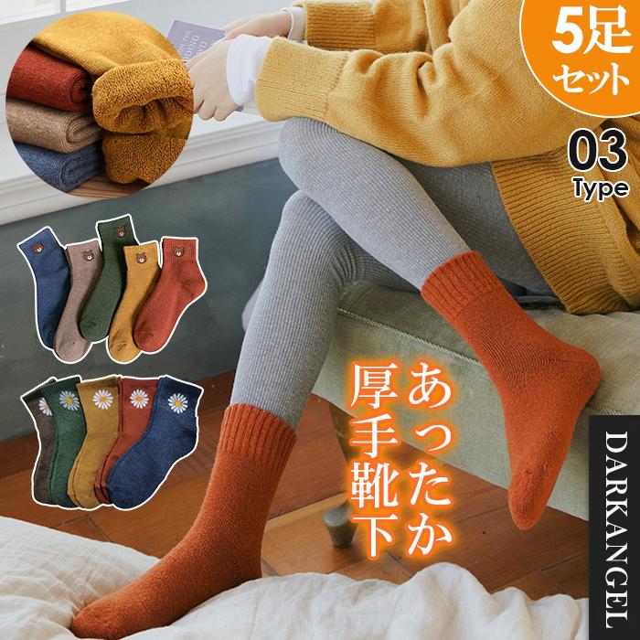 靴下 レディース おしゃれ 暖かい くつ下 ソックス 冷え取り靴下 冷え性対策 ルームソックス 防寒対策 冷え あったか厚手靴下 5足セット Ac2110 3145 Dark Angel ダークエンジェル 通販 Yahoo ショッピング